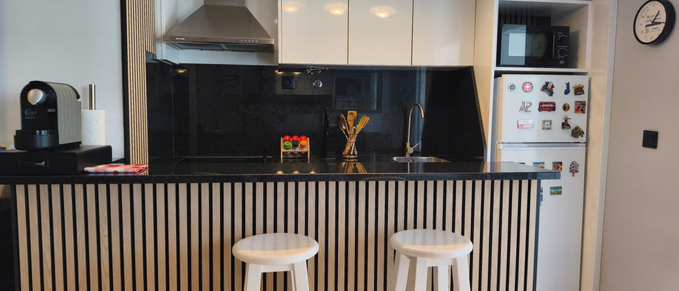 ▪ Cozinha equipada (fogão, micro-ondas, frigorífico, máquina de café).